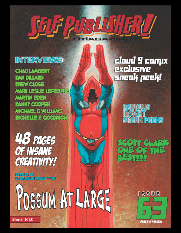 Also in the 48-page issue are interviews with Chad Lambert, creator of Possum at Large (along with a Sneak Peek at the comic), Dan Dillard, Drew Close, Mark Lesie Lefebvre, Canny Cooper, Michael C. Williams, and Richelle E. Goodrich.