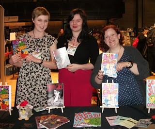 The Glasgow-based Team Girl Comic collective have been active in Scotland for the last couple of years selling their main Team Girl Comic title, as well as the individual contributors own titles, around the various comic shops and events in Edinburgh, Dundee and Inverness as well as in their hometown. With back issues selling out and a new issue due in the summer, the TGC team, including editor Gillian Hatcher (left) and contributors Coleen Campbell (centre) and Clare Yvette (right), are now looking to get their main title onto a firm financial footing with a Kickstarter initiative.