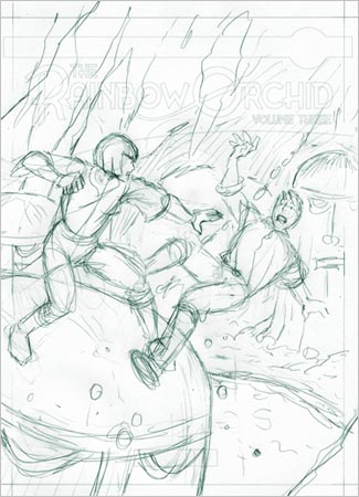 The original version of the story and its artwork has gone through various stages over those ten years since BAM! and Garen explains some of the differences and his reason behind the changes on The Rainbow Orchid blog. This also includes a few brief images from the new book and roughs of the cover and some other pages.