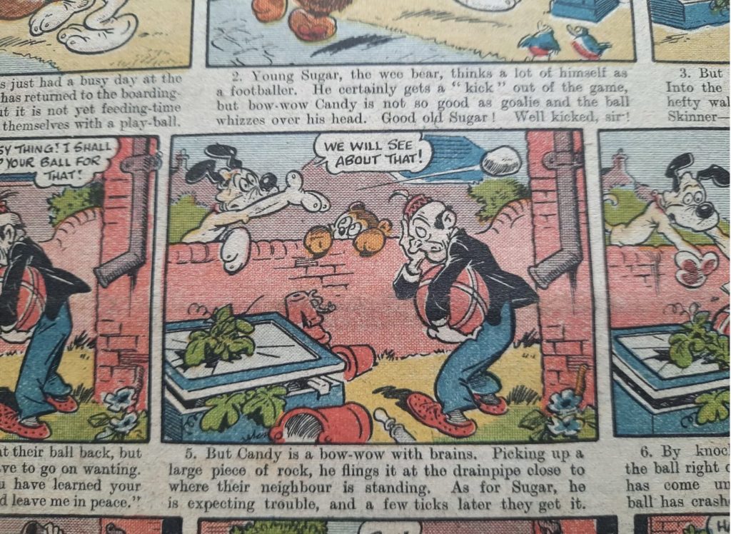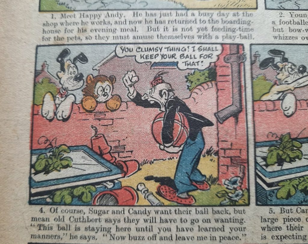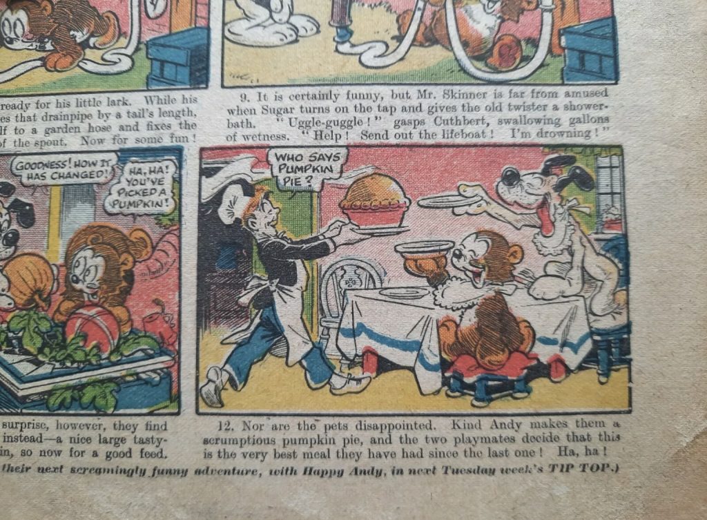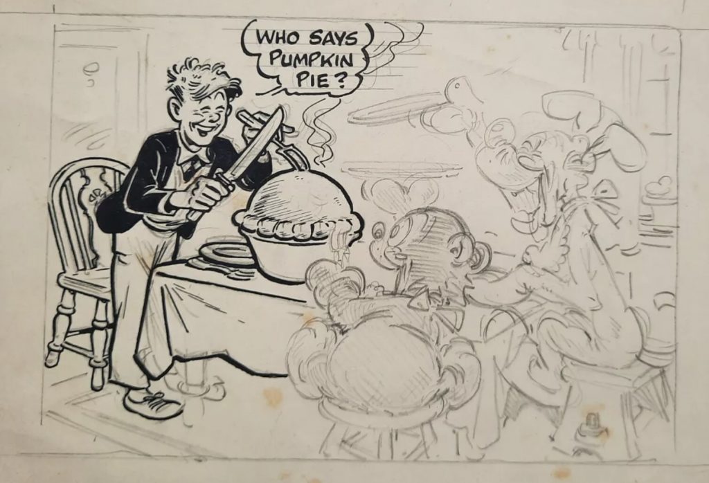 His work continued to appear in titles like Radio Fun (“Stymie and his Magic Wishbone”) and Tip Top (“Happy Andy”). In his later years, Wilson drew strips about famous personalities for TV Fun and Film Fun.
