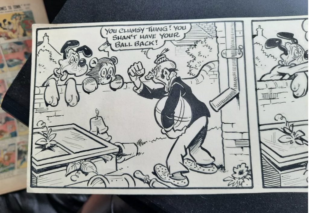 Fans of the brilliant British humour comic comic artist Roy Wilson might want to check out this original art from the 1940s British story paper Tip Top, currently being offered on eBay.