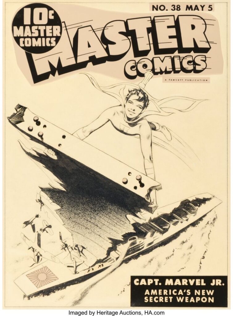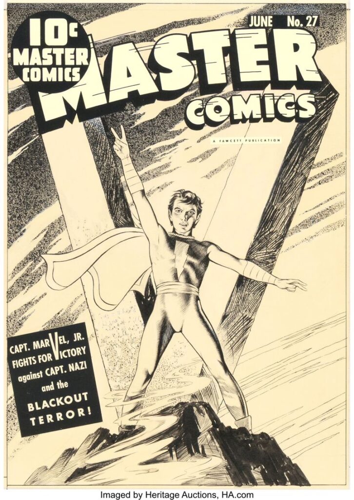 One especially exciting Golden Age highlight of the Fromm Collection is the original Captain Marvel Jr. “V for Victory” Master Comics No. 27 cover art by Mac Raboy.