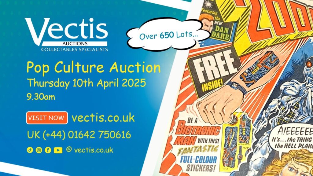 The latest Vectis Pop Culture Auction featuring many comic lots takes place tomorrow, Thursday 10 April 2025, starting at the slightly earlier time of 9.30am (UK).